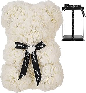 WJY ローズベア ハンドメイド ローズテディベア 母の日 バレンタインデー 完璧な記念日 ブライダル ウェディング 厚みのある透明ギフトボックス 高さ10インチ 250以上の花(ホワイト)
