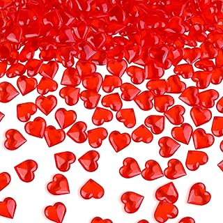 URATOT 240個 レッドアクリルハート宝石 1ポンド バレンタインデー デコレーション パーティーテーブルスキャッターデコレーション 円形ボックス付き 花瓶の詰め物 バレンタインデー ウェディング ホームデコレーション