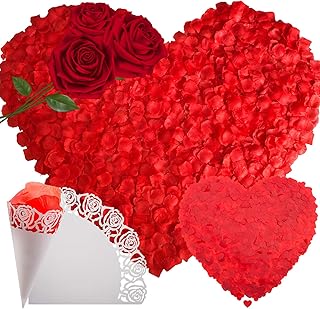 人工バラの花びら 4500枚パック バレンタインデー、ロマンチックな夜の結婚式用 (レッド)