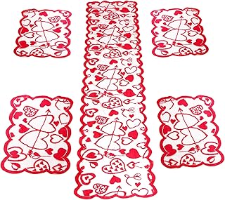 バレンタインデー装飾セット レースハートテーブルランナー 1枚とレーステーブルプレースマット 4枚 人工バラの花びら 500枚 バレンタイン ウェディング ホリデーパーティーの装飾に